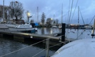 Przystań Pogoni Szczecin przy ul. Przestrzennej. W piątek jeszcze chwilę przed godzina 18.00 było tu dość spokojnie. Ale wiatr cały czas się wzmaga. W związku z tym, że prędkość wiatru może wynieść nawet 120 km/h, zabezpieczono jachty, przeparkowano samochody...