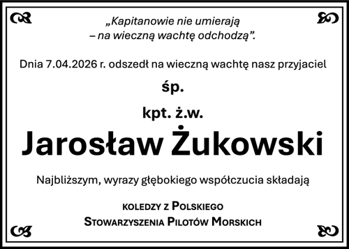 Odszedł śp. kpt. ż. w. Jarosław Żukowski