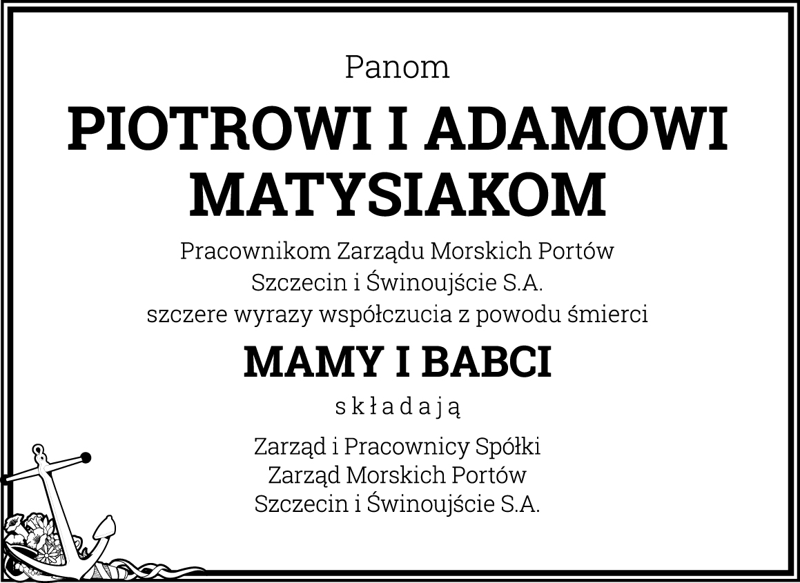 Piotrowi i Adamowi Matysiakom wyrazy współczucia z powodu śmierci Mamy i Babci