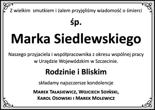 Rodzinie i Bliskim śp. Marka Siedlewskiego