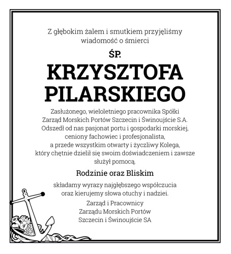Rodzinie oraz Bliskim śp. Krzysztofa Pilarskiego