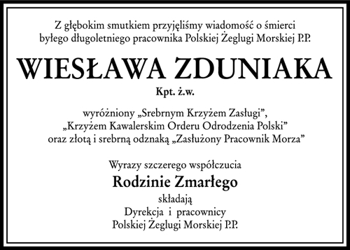 Rodzinie Zmarłego Wiesława Zduniaka