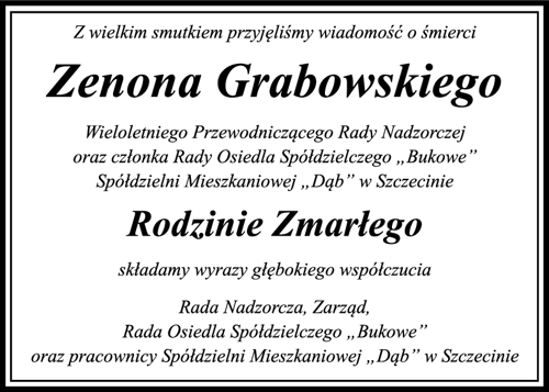 Rodzinie Zmarłego Zenona Grabowskiego