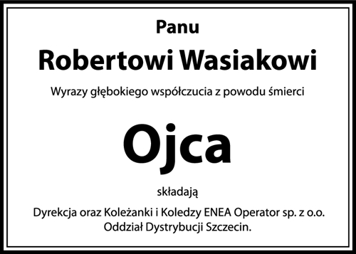 Wyrazy głębokiego współczucia Panu Robertowi Wasiakowi