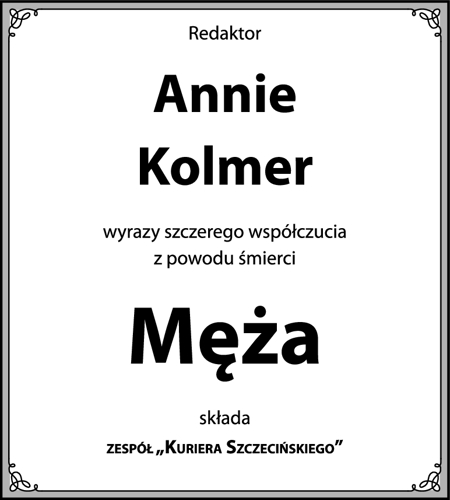 Wyrazy szczerego współczucia Redaktor Annie Kolmer