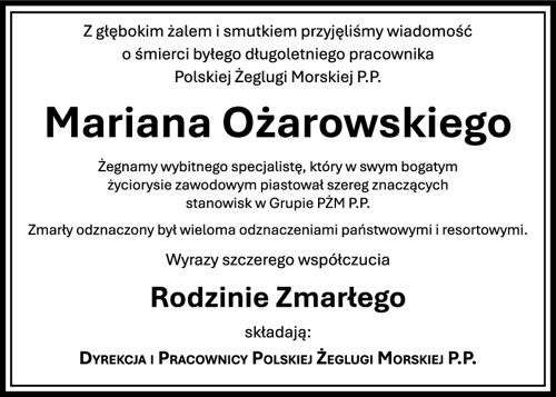 Wyrazy szczerego współczucia Rodzinie Zmarłego Mariana Ożarowskiego