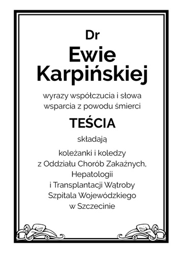 Wyrazy współczucia dr Ewie Karpińskiej