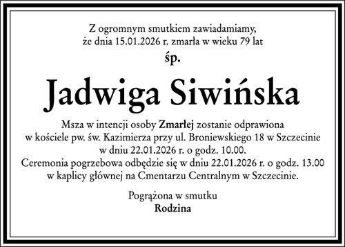 Zmarła śp. Jadwiga Siwińska