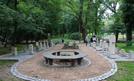 Granitowa ławka otacza niewielki różanecznik. Zieleniec z liśćmi akantu prowadzi ku urnie w kształcie wielkiej amfory, z której wkrótce będą „płynąć" pędy bluszczu. Pomiędzy tymi szczytowymi elementami lapidarium umieszczono najokazalsze pozostałości...