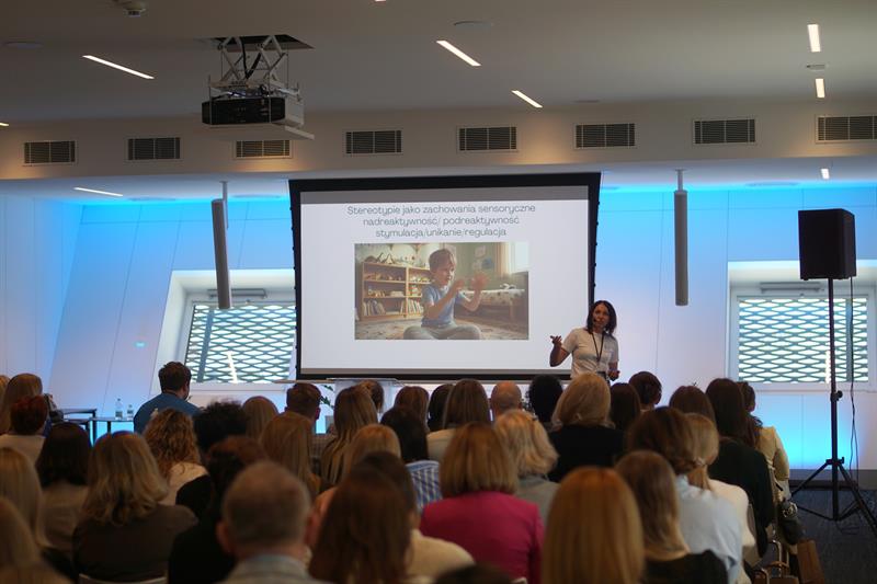 Sympozjum otwierał wykład pt. Dlaczego podskakuję - sensoryczny świat autyzmu. Prelegentką była dr n. med. Mirosława Bloch - prezeska Stowarzyszenia Pomocy Dzieciom z Autyzmem SENSE, założycielka i dyrektorka placówek edukacyjnych SENSE.
