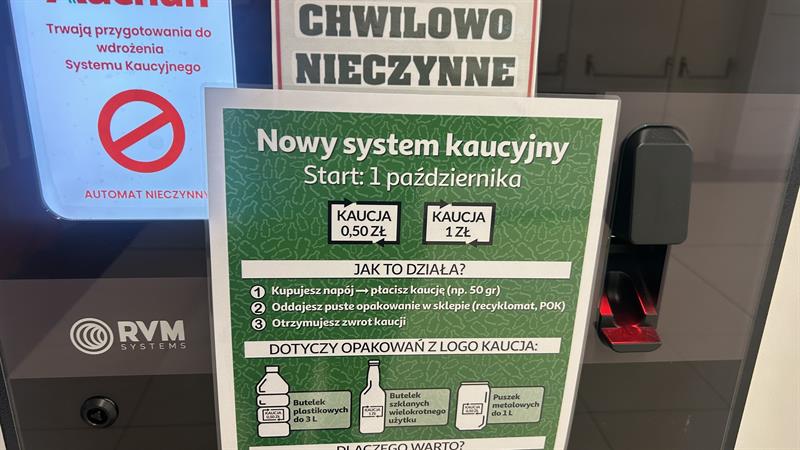 Od 1 października w Polsce wystartował kaucyjny system zwrotu plastikowych butelek. Automaty przyjmujące butelki mają znaleźć się przed sklepami wielkopowierzchniowymi. Jednak dotąd nie we wszystkich takich miejscach butelkomaty zainstalowano. Mało tego, wiele butelek nie posiada jeszcze niezbędnego znaku kaucji, który identyfikuje te, które mają być objęte systemem.