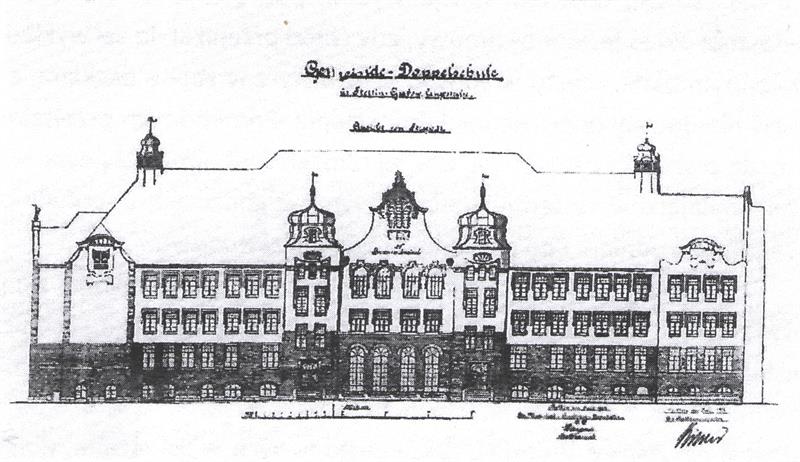 Doskonale znany szczecinianom budynek mieszczący się przy obecnej ulicy Racibora 60/61 powstał na początku XX wieku. Jego przeznaczeniem była szkoła. Projekt wykonał architekt Wilhelm Meyer-Schwartau, którego nazwisko jest związane w Szczecinie z takimi reprezentacyjnymi obiektami jak np. układ przestrzenny Hakenterrasse oraz Cmentarza Centralnego, obecny rektorat Pomorskiego Uniwersytetu Medycznego przy ul. Rybackiej, neorenesansowy gmach Urzędu Celnego, modernistyczny gmach Królewskiej Pruskiej Szkoły Rzemiosł Budowlanych (obecnie Wydział Technologii i Inżynierii Chemicznej ZUT tzw. Stara Chemia).