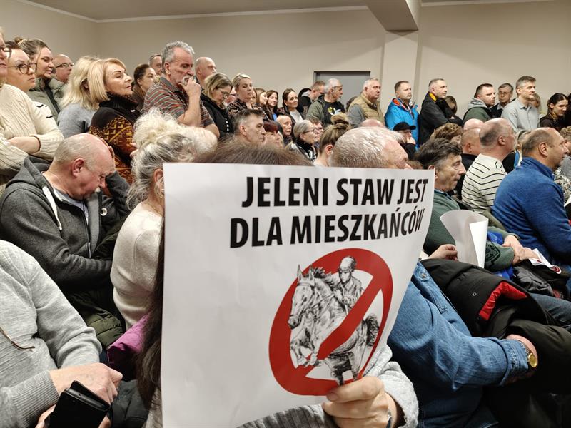 Dotychczas dostępny dla wszystkich teren rekreacyjny w rejonie ul. Zoologicznej, Dąbskiej i Sowiej – w bliskości Jeleniego Stawu – został wydzierżawiony firmie Equinity P.S.A. przez Zarząd Budynków i Lokali Komunalnych: w trybie bezprzetargowym, za cenę 5745,93 zł (netto) rocznie, na 30 lat. Umowę podpisano 30 grudnia ub. roku. Na 16 ha miejskiego gruntu w sercu Kijewa inwestor zamierzał wybudować Centrum Sportów Jeździeckich, w jakim miałyby się odbywać zawody o randze krajowej i międzynarodowej, ze stajniami (7 budynków, w każdym po 50 boksów dla koni), dwoma halami głównymi, budynkiem klubowym, zapleczem trybun, stępownikiem, lonżownikiem, karuzelą i m.in. wybiegami dla koni. Gdy o sprawie dowiedzieli się mieszkańcy Kijewa, gremialnie zaprotestowali.