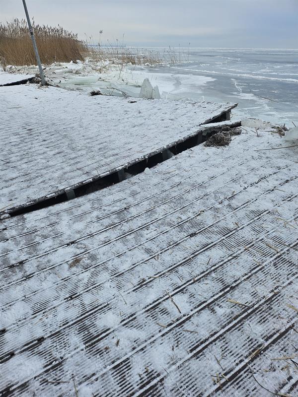 Do zniszczeń doszło w nocy z niedzieli na poniedziałek. Jak relacjonuje Dagmara Wojciechowska z Ośrodka Sportu i Rekreacji w Policach, to właśnie kra była bezpośrednią przyczyną szkód.