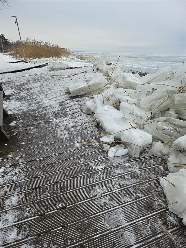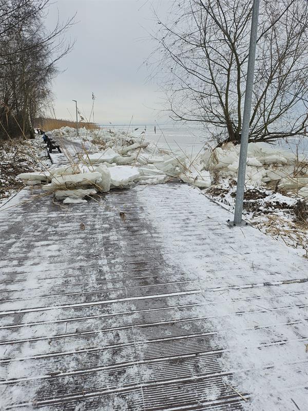 Surowe warunki zimowe i napływ kry spowodowały poważne zniszczenia infrastruktury plażowej i rekreacyjnej w Trzebieży. Najbardziej ucierpiała część promenady bezpośrednio przy wodzie - ta pozostaje całkowicie wyłączona z użytkowania. Skala strat nie jest jeszcze w pełni znana, ponieważ lód wciąż zalega na uszkodzonych elementach.