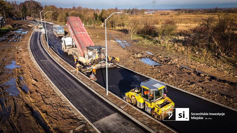 Na budowie nowej drogi w rejonie ulic Stołczyńskiej i Skwarnej rozpoczęto układanie pierwszych warstw bitumicznych. To jeden z kluczowych etapów inwestycji, który oznacza przejście z prac konstrukcyjnych do robót związanych z finalnym kształtowaniem nawierzchni.