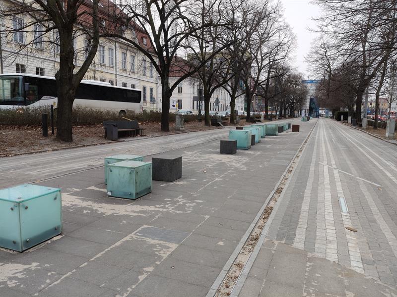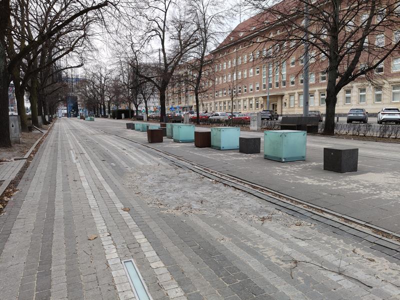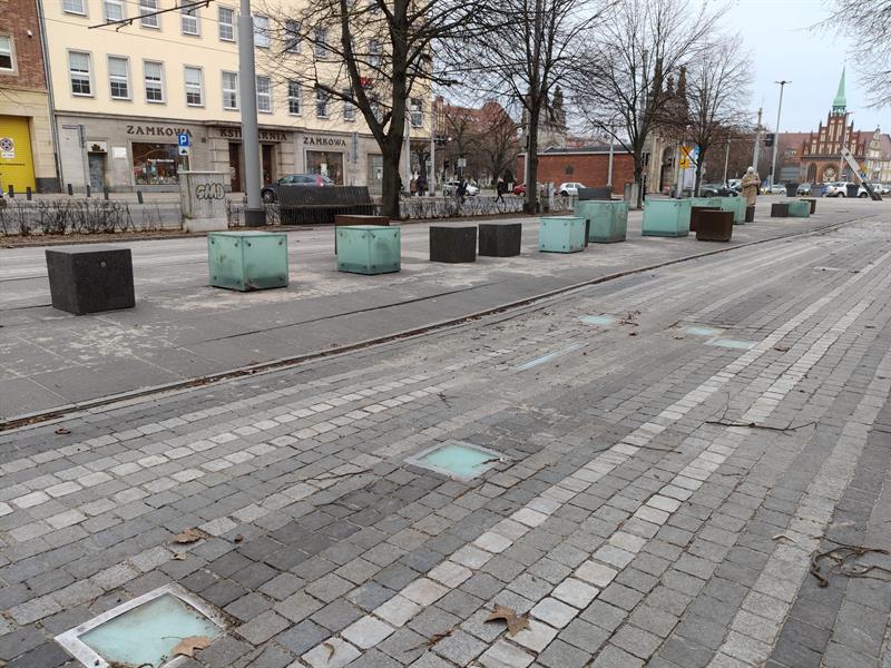 Podobne pułapki czyhają na pieszych także przy „rynnach" - dziś mało kto pamięta, że w sezonie fontann miała nimi płynąć woda. Zostały jednak trwale wyłączone z użytkowania po dwóch latach od oddania do użytku (2014 r.), gdy okazało się, że przez byle opadły listek podmywają pobliskie torowisko tramwajowe, zagrażając jego stabilności.