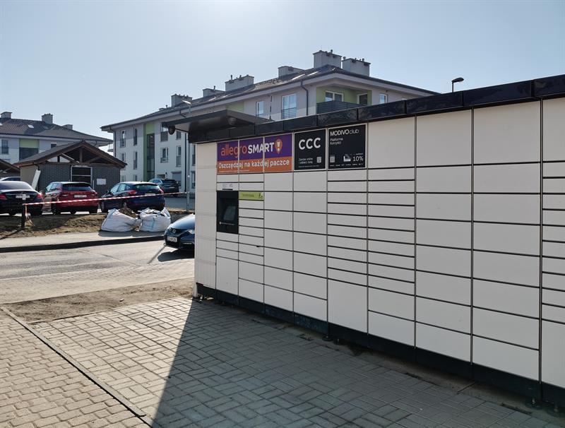 Przy ul. Jaworzynki w Szczecinie paczkomat Allegro i InPostu funkcjonuje od paru lat, tuż przy miejscowej „Żabce". Był już rozbudowywany o kolejne sekcje. Obecnie przypomina długi biały mur, oddzielający chodnik od trawnika. Kolejny paczkomat ma stanąć naprzeciwko - po drugiej stronie jezdni, przy parkingu. Jak pierwszy, czyli także kosztem trawnika. Jednak tym razem pod inwestycję - jak zwraca uwagę nasza Czytelniczka - zostały wycięte drzewa.