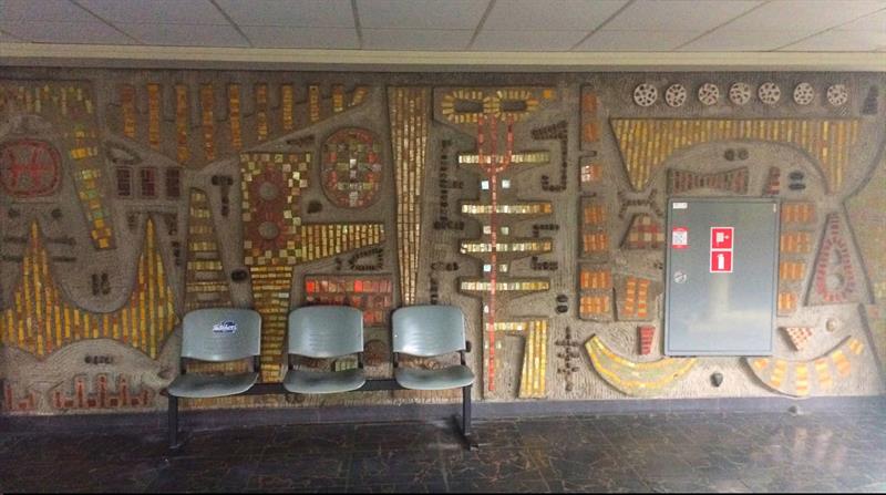 Abstrakcyjne mozaiki zdobiły ściany głównego holu oraz nad dziecięcym basenem dawnego Wojewódzkiego Domu Sportu. Jednak lata temu w jedną z nich „wkomponowano" drzwiczki skrzynki ppoż. - niszcząc integralność artystycznego dzieła. Jest szansa, aby otworzyć je w pełni. O ile w fotograficznych archiwach szczecinian zachowały się zdjęcia mozaiki sprzed jej dewastacji.