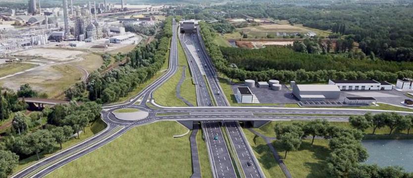 Przy węźle będzie zlokalizowany obwód drogowy wraz z Centrum Zarządzania Tunelem. Tuż za węzłem rozpocznie się wlot do tunelu drogowego przechodzącego pod instalacjami Zakładów Chemicznych, liniami kolejowymi, DW114, terenami portu Police i nurtem Odry. Wylot zlokalizowany będzie około 500 m od wschodniego brzegu Odry. Wizualizacja GDDKiA