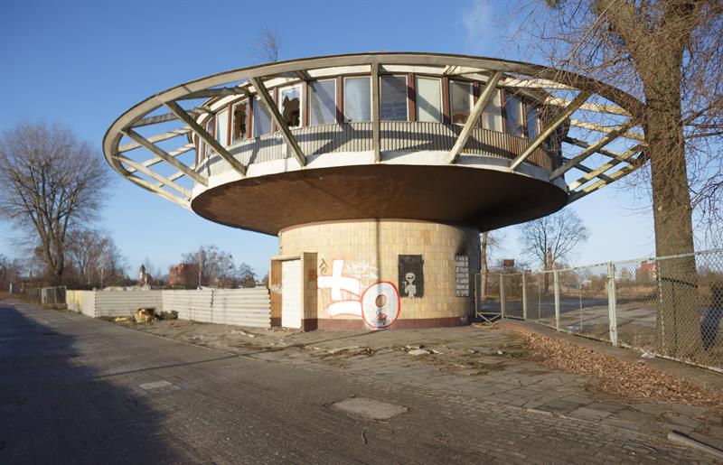 Przez wiele lat w Szczecinie istniały trzy charakterystyczne budynki w kształcie rotundy. Najbardziej znany był „grzybek" przy Bramie Portowej, w którym znajdowało się centrum sterowania ruchem tramwajów. Obok, w tzw. okrąglaku, były kasy biletowe Miejskiego Zakładu Komunikacji. Trzecia okrągła konstrukcja to przypominający kosmiczny spodek budynek po dawnej „Baltonie", znajdujący się przy ulicy Gdańskiej. Do dziś przetrwała tylko ta ostatnia konstrukcja, od lat niewykorzystywana i mocno już niestety zdewastowana.