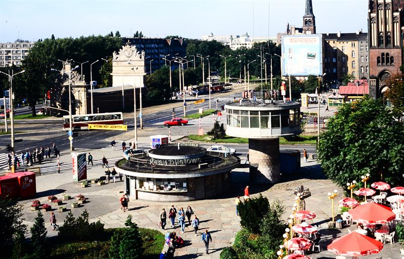 Zacznijmy od „grzybka" przy Bramie Portowej. Przez lata w charakterystycznej budowli znajdowała się dyspozytornia MZK, z której sterowano ruchem tramwajów na skrzyżowaniu przy Bramie Portowej. Charakterystyczna budowla dyspozytorni pojawiła się w 1970 roku. Obok wybudowano okrągły budynek, gdzie umieszczono kasy biletowe, w których można było kupić bilety normalne i ulgowe na przejazd tramwajami i autobusami, tzw. dziesięcioprzejazdówki (bilety uprawniające do 10 przejazdów) oraz bilety miesięczne, po które na przełomie kolejnych miesięcy zawsze ustawiały