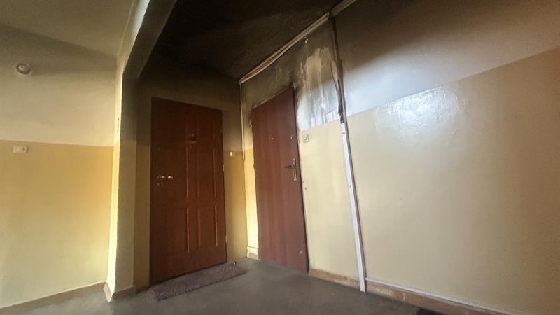 Wejście do budynku znajduje się z drugiej strony ale najpierw chcemy zobaczyć stronę bloku, na którą wychodzą okna feralnego mieszkania. Z daleka widać je poniżej gzymsu dziesięciopiętrowego bloku. Otwór okienny to czarny wypalony prostokąt, wokół którego rzuca się w oczy osmalona dymem i sadzą, miejscami przypieczona przez płomienie, elewacja.