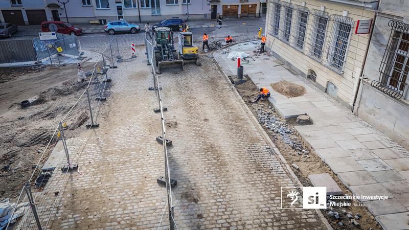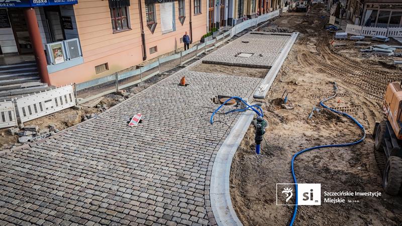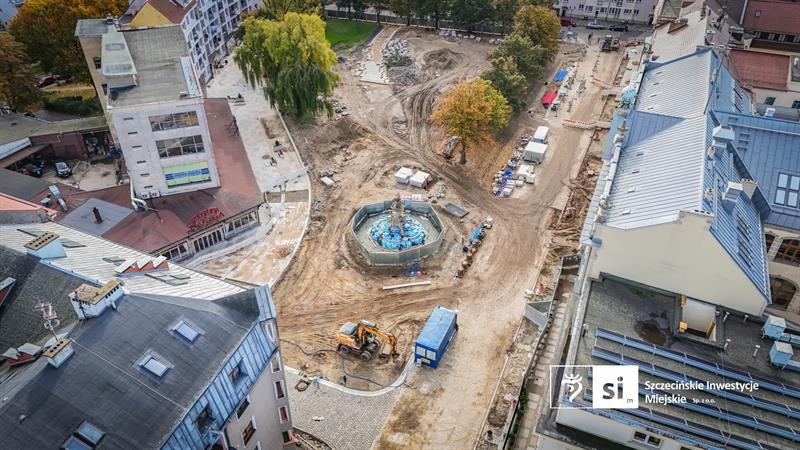 Na placu Orła Białego w Szczecinie trwają roboty budowlane związane z kompleksową przebudową przestrzeni. Wykonawca prowadzi prace przy instalacjach podziemnych - energetycznych, oświetleniowych i teletechnicznych. Równocześnie układane są nowe chodniki i nawierzchnia z płyt granitowych.