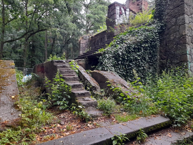 - Odnalezione w maju zeszłego roku oraz podczas robót budowlanych detale zostały wyeksponowane w mocnych koszach gabionowych, zarówno polana leśna jak i górny taras ruin zostały oczyszczone z roślinności, na wieży pojawiły się słynne (sic!) barierki, w otoczeniu