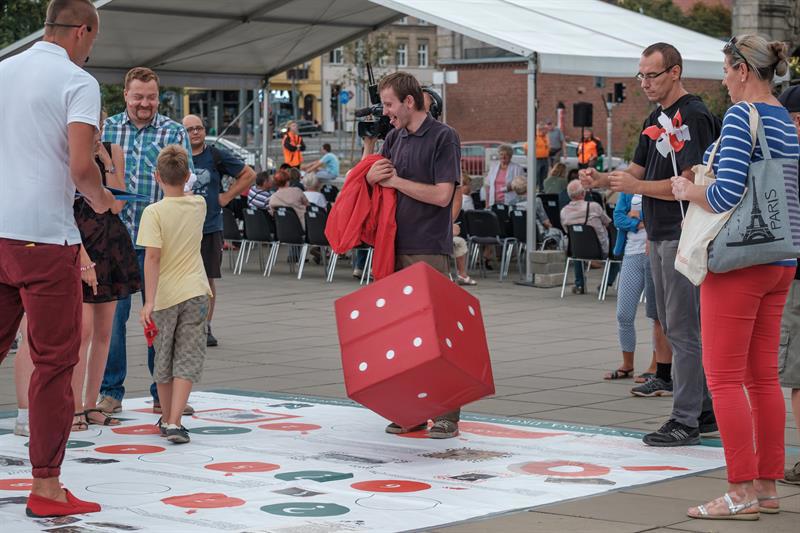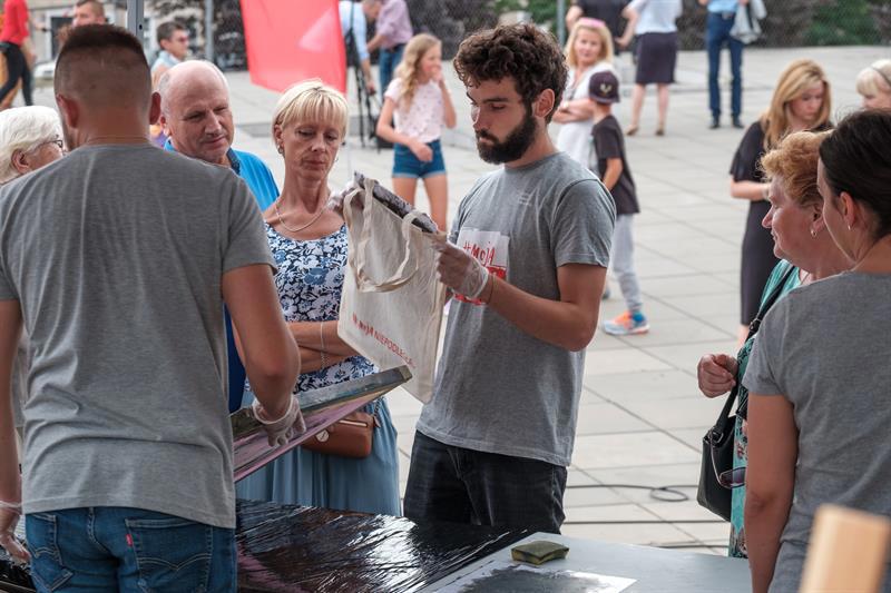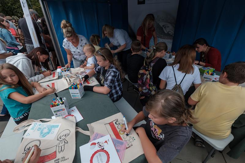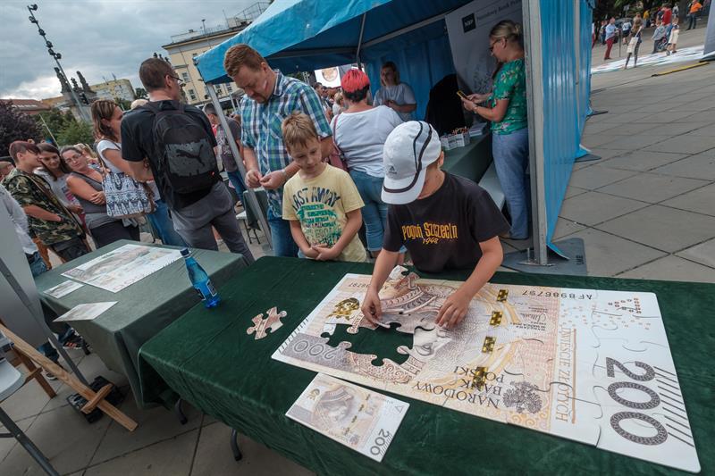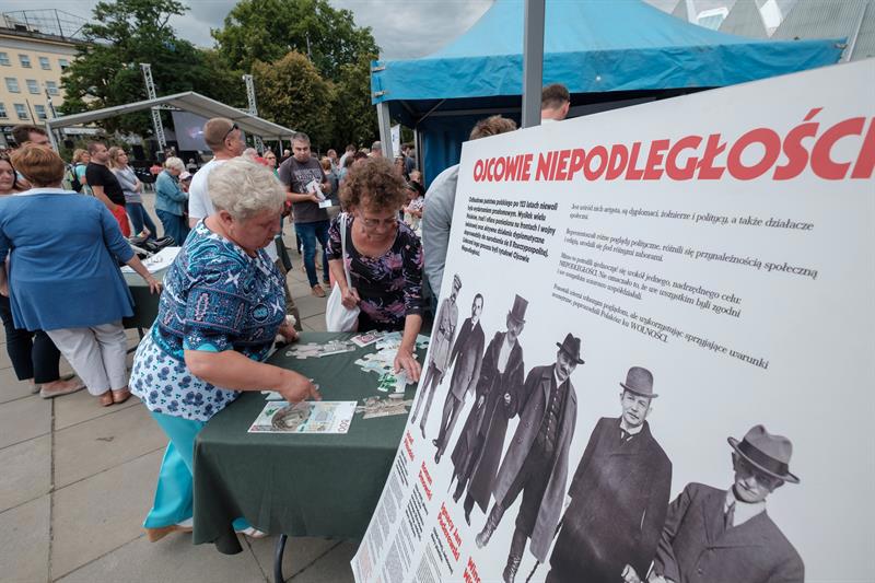 Z okazji 100-lecia odzyskania przez Polskę niepodległości na placu Solidarności w środę czekało wiele atrakcji przygotowanych przez Narodowy Bank Polski. Był m.in. punkt zamiany monet pięciozłotowych z okolicznościowym napisem. Kolejka do tego stoiska ustawiła się na godzinę przed otwarciem. Można też było wziąć udział w przestrzennej grze planszowej „Droga do wolności”.