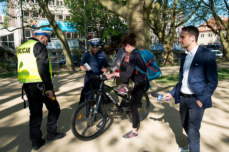 Policja w czwartek kontrowała rowerzystów przy Jasnych Błoniach w Szczecinie. Funkcjonariusze zwracali uwagę na elementy wyposażenia rowerów. Sprawdzali także trzeźwość użytkowników jednośladów.