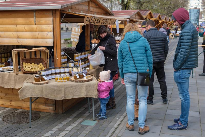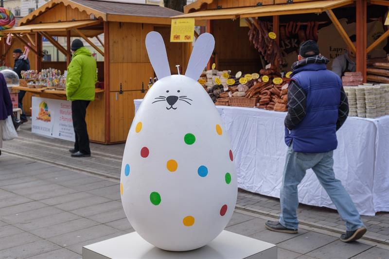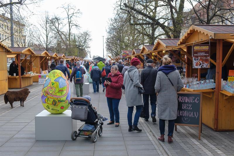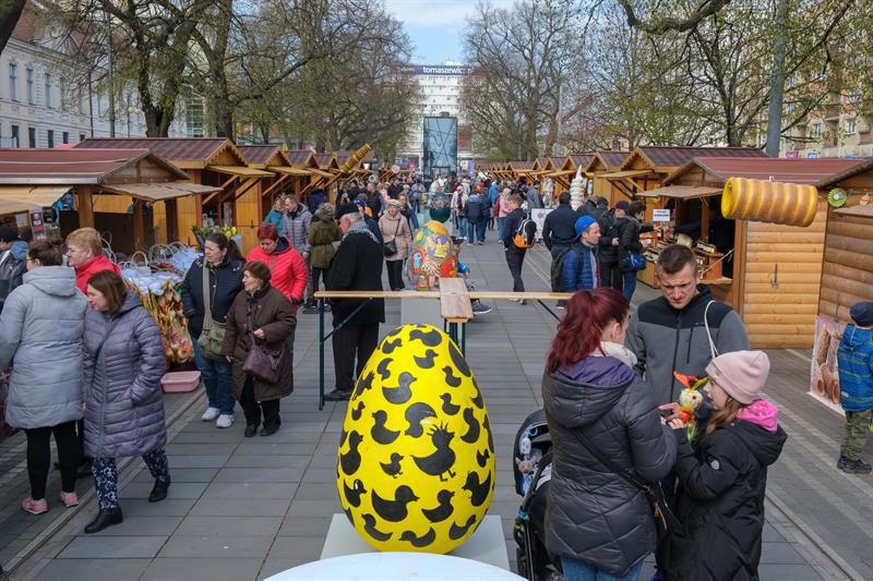 Smakowite mazurki, gigantyczne pisanki, chleby na zakwasie, a w kompozycjach z wiosennych kwiatów zajączki i kurczaczki - to wszystko i jeszcze więcej na Szczecińskim Jarmarku Wielkanocnym, który w sobotę (13 kwietnia) otworzył się na szczecinian i turystów w dawnej alei kwiatowej, czyli na pl. Żołnierza Polskiego.