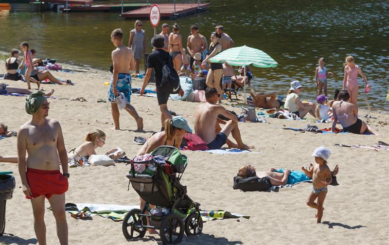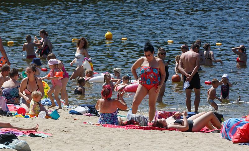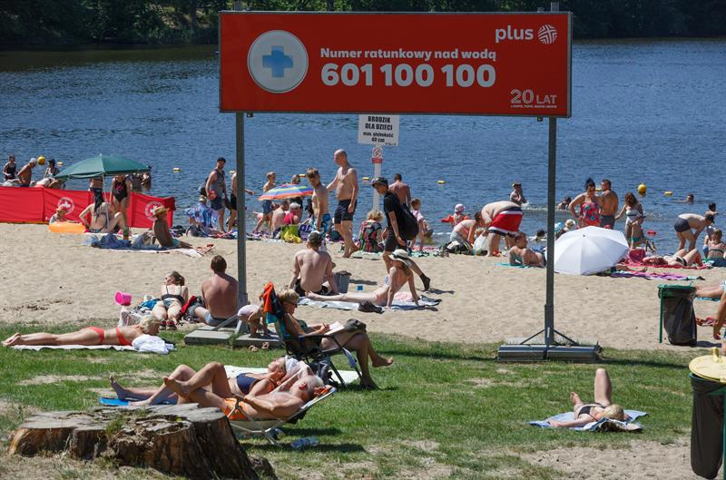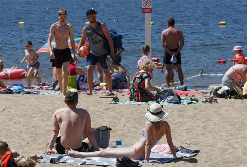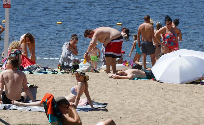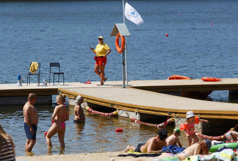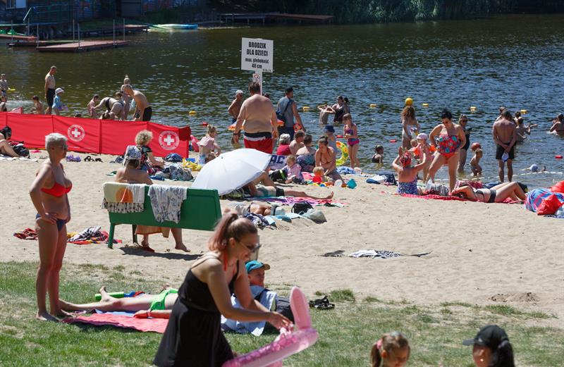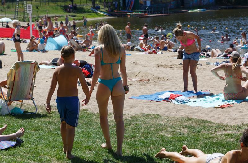 Tak szczecinianie chłodzili się nad wodą w upalną sobotę 8 lipca na plaży kąpieliska Głębokie.