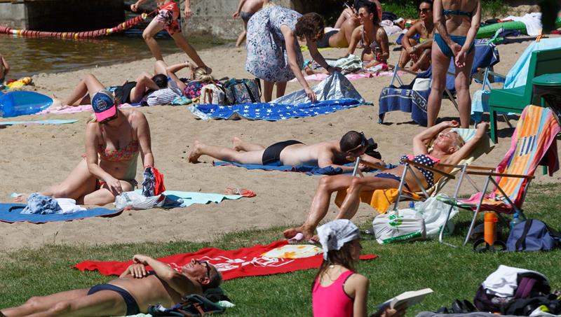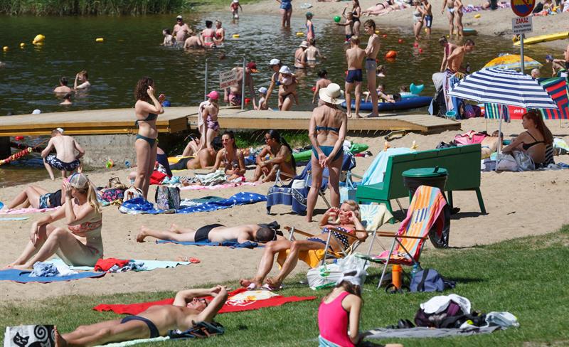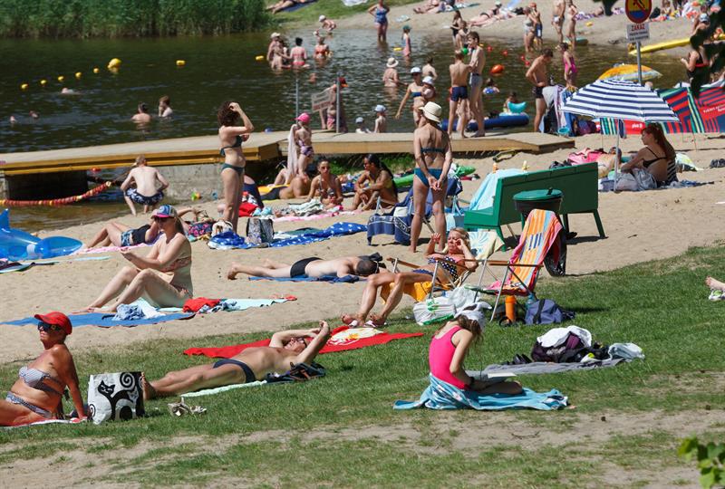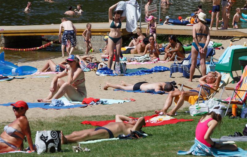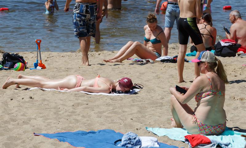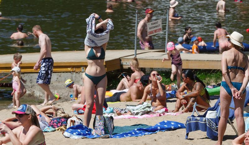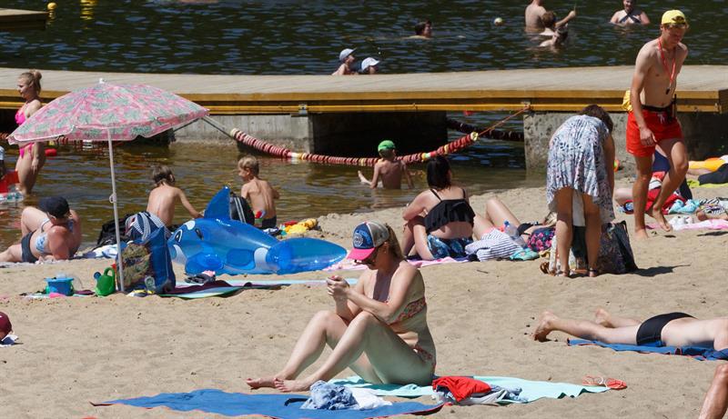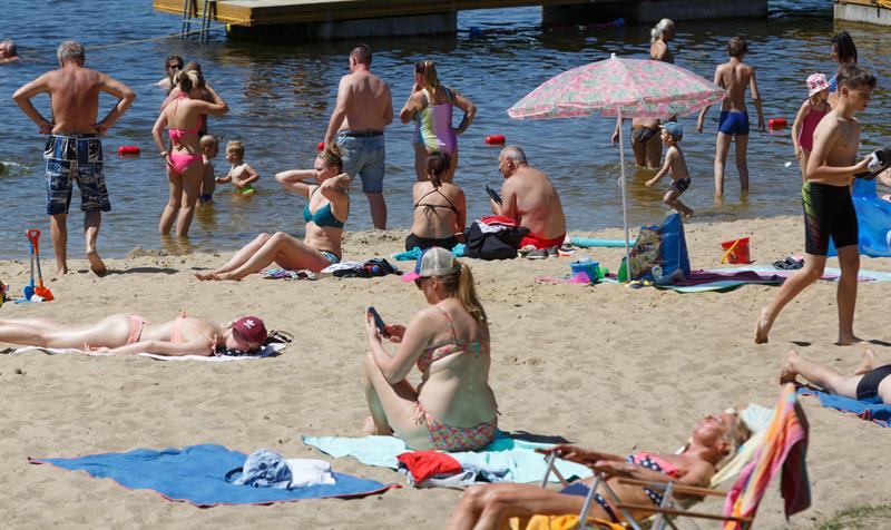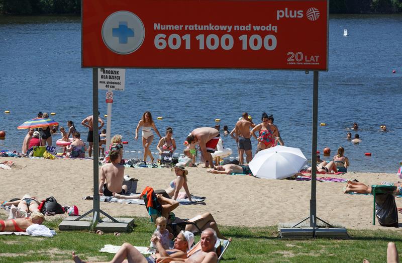 Tak szczecinianie chłodzili się nad wodą w upalną sobotę 8 lipca na plaży kąpieliska Głębokie.