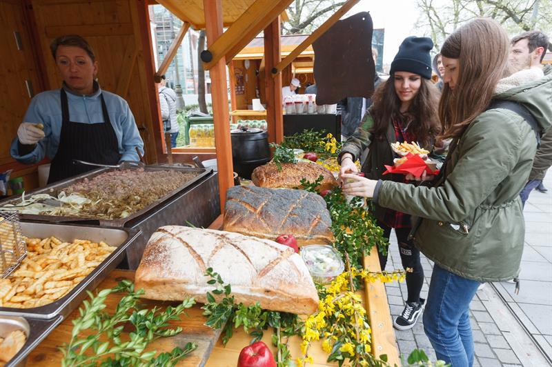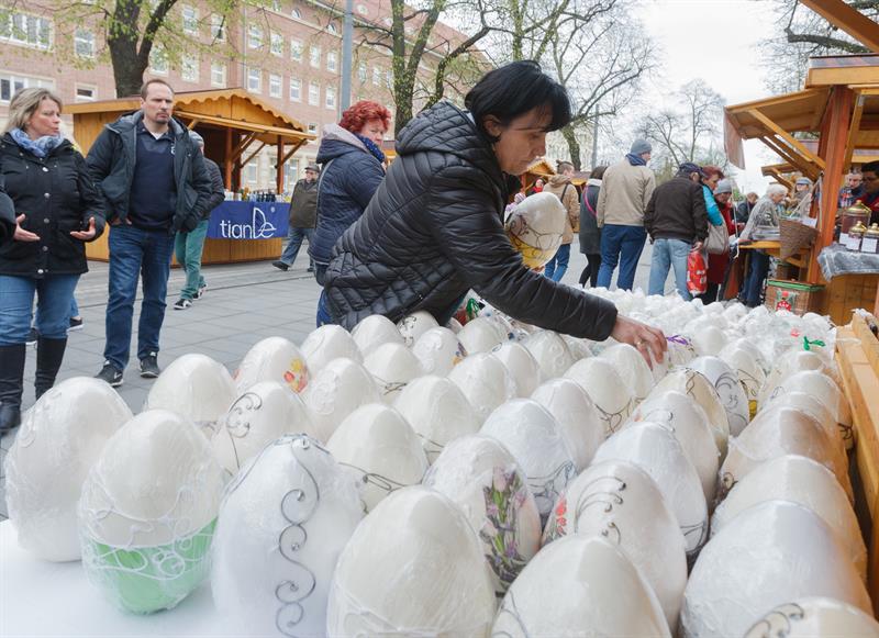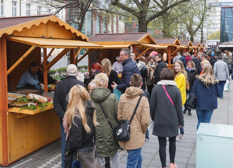 Smutna i pusta zwykle aleja kwiatowa na szczecińskim pl. Żołnierza ożyła. Już od godz. 10 w sobotę (8 kwietnia) pojawiły się na niej liczne stoiska, zabrzmiała muzyka, zrobiło się kolorowo, a w powietrzu unosiły się wabiące zapachy oferowanych przez sprzedawców potraw. To za sprawą wielkanocnego jarmarku.