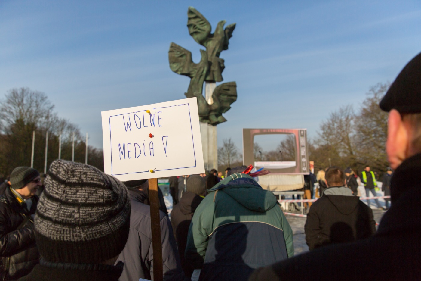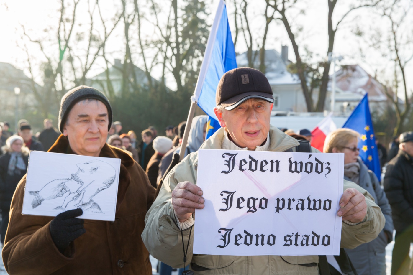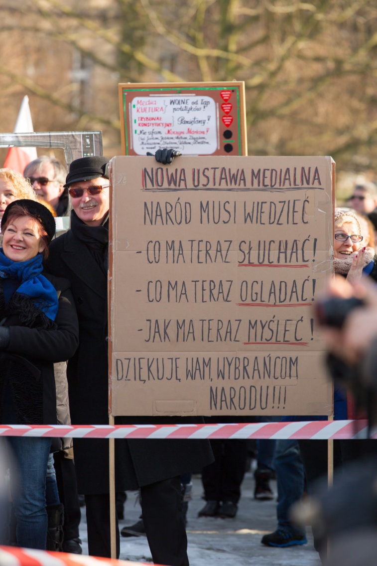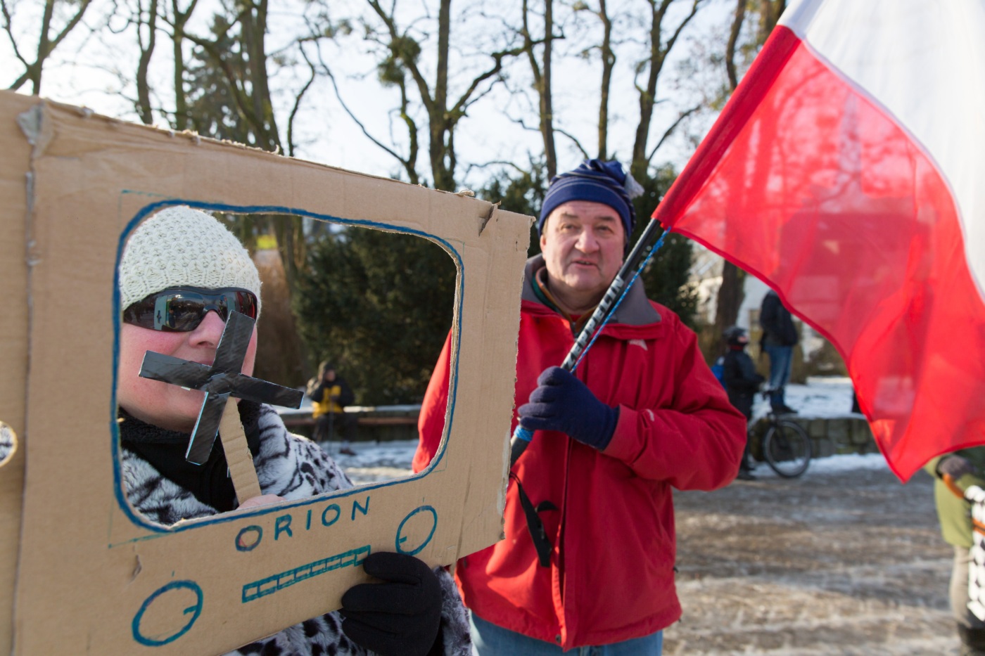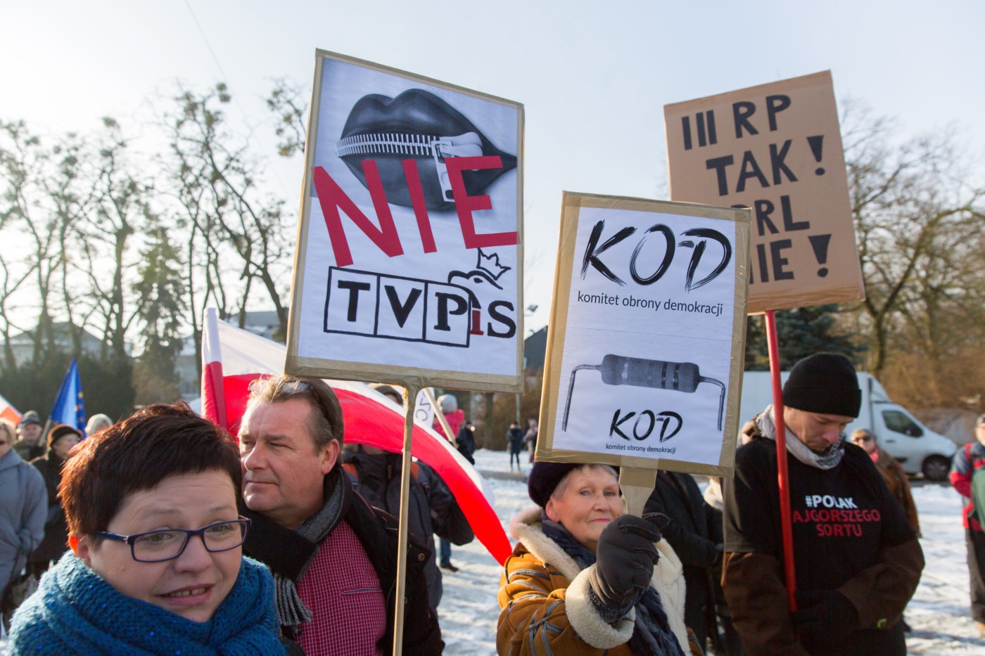Pikieta zwolenników Komitetu Obrony Demokracji na Jasnych Błoniach w Szczecinie (9.01.2016 r.).