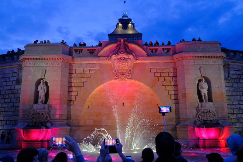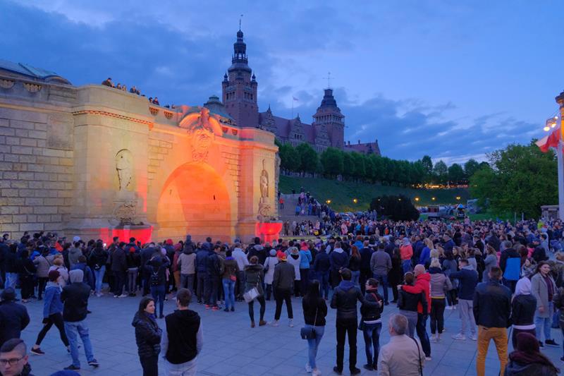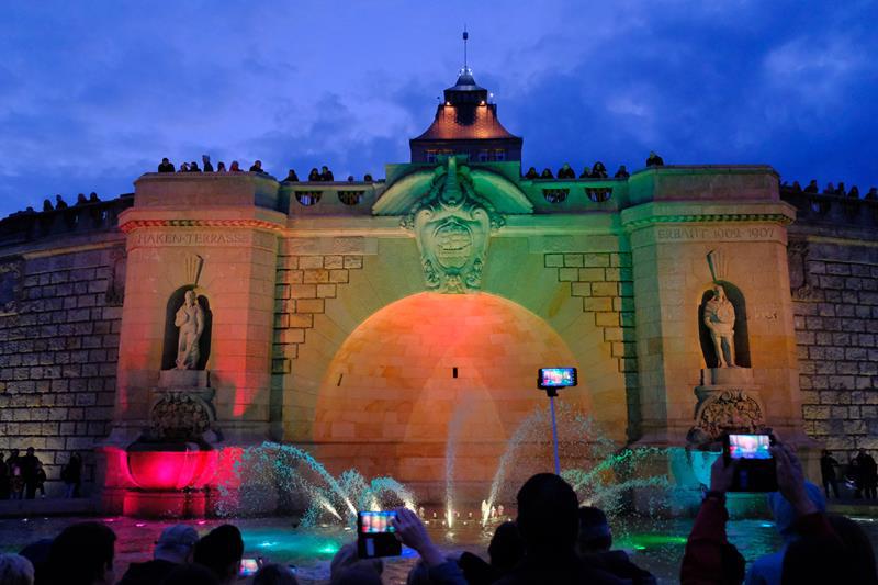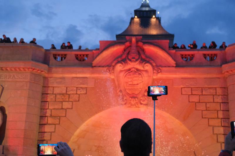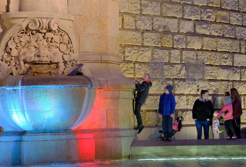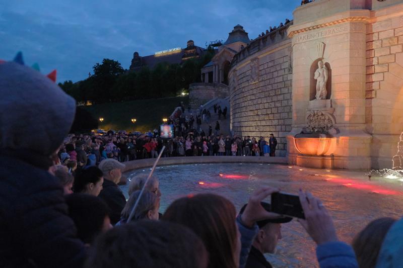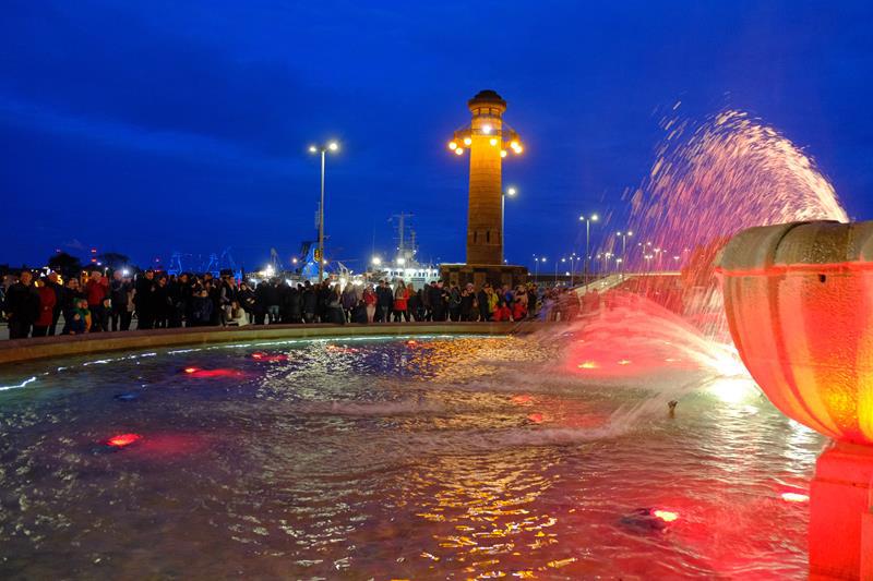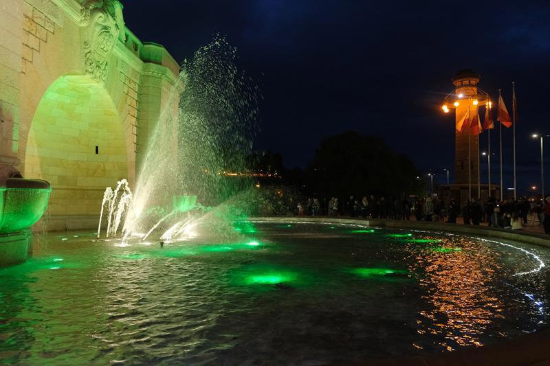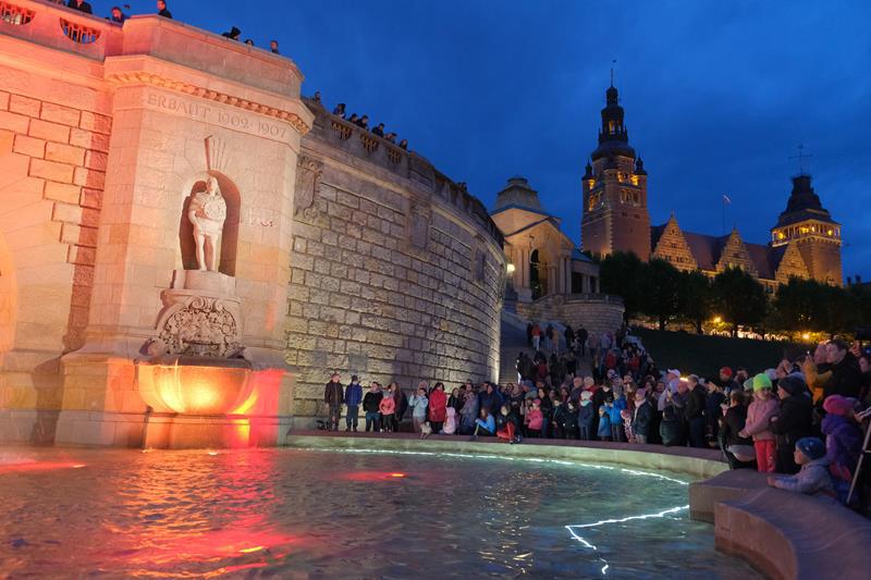 Na co dzień fontanna na Wałach Chrobrego jest podświetlona. Zaprogramowano ją tak, by strumienie wody tryskały w określonym rytmie. Podczas pierwszej prezentacji z głośników poleciał utwór pochodzący z filmu „Piraci z Karaibów”. Niestety zagłuszał go szum wody i muzykę ledwo było słychać. Pokaz warto jednak zobaczyć, bo wygląda efektownie.