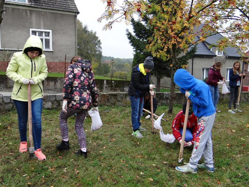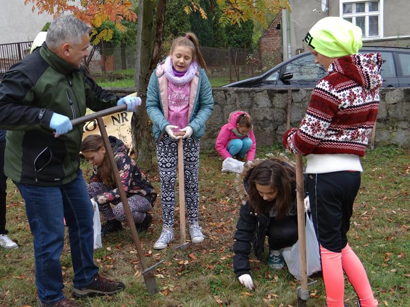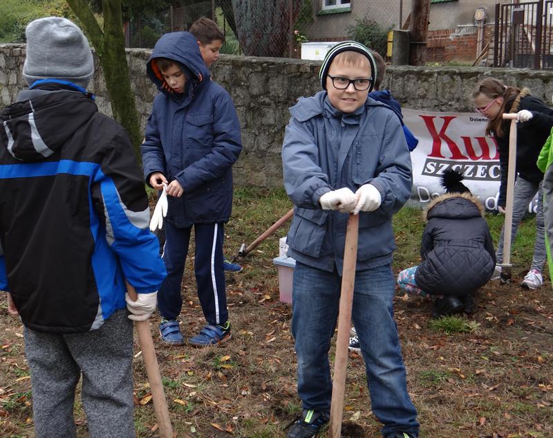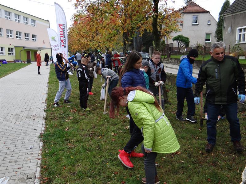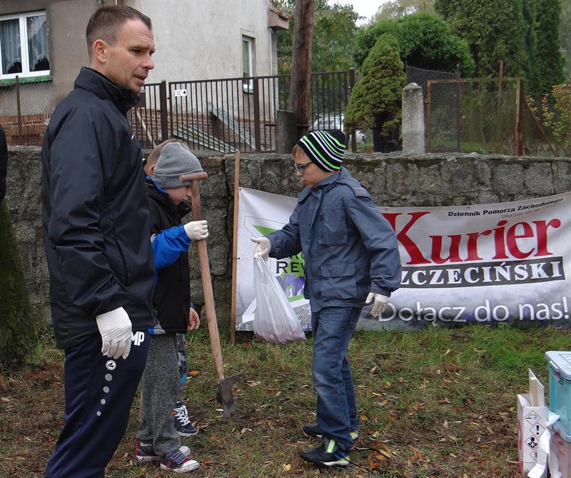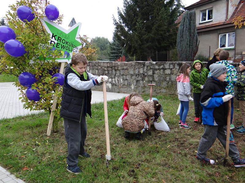 Efekt swojej pracy w plenerze i przemianę trawnika wzdłuż szpaleru jarząbów na przyszkolnym placu w nowy dywan kwiatowy z zasadzonych przez siebie wczoraj fioletowych i niebieskich w paski cebulek krokusów uczniowie, ich najbliżsi, nauczyciele i mieszkańcy Skolwina i nie tylko ujrzą już za kilka miesięcy, na wiosnę. ©℗