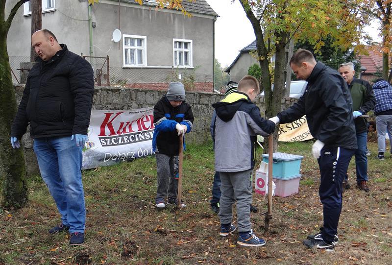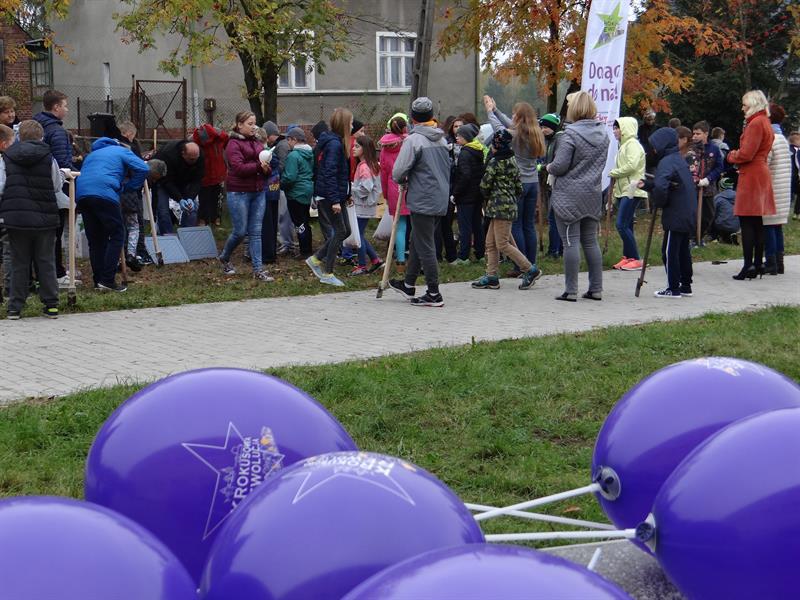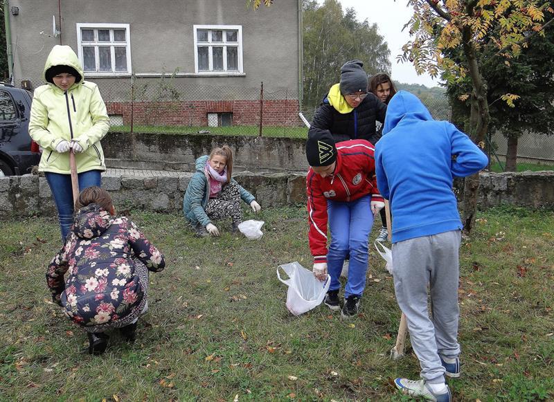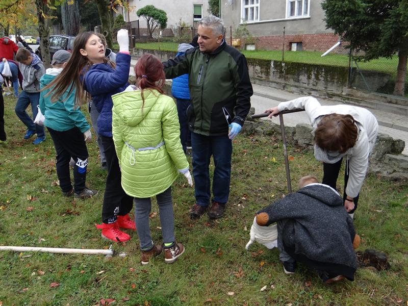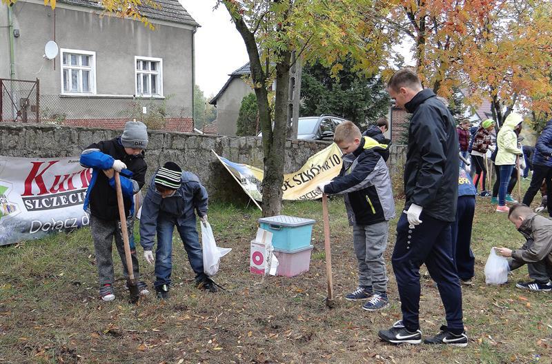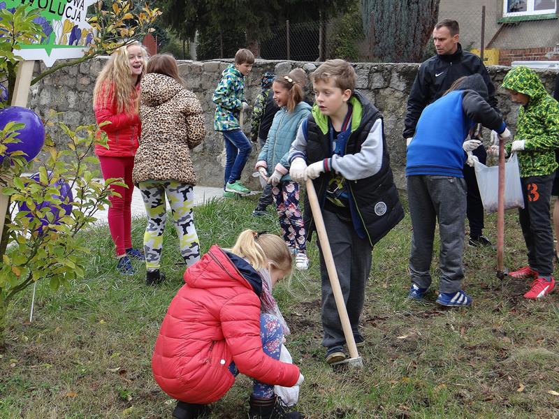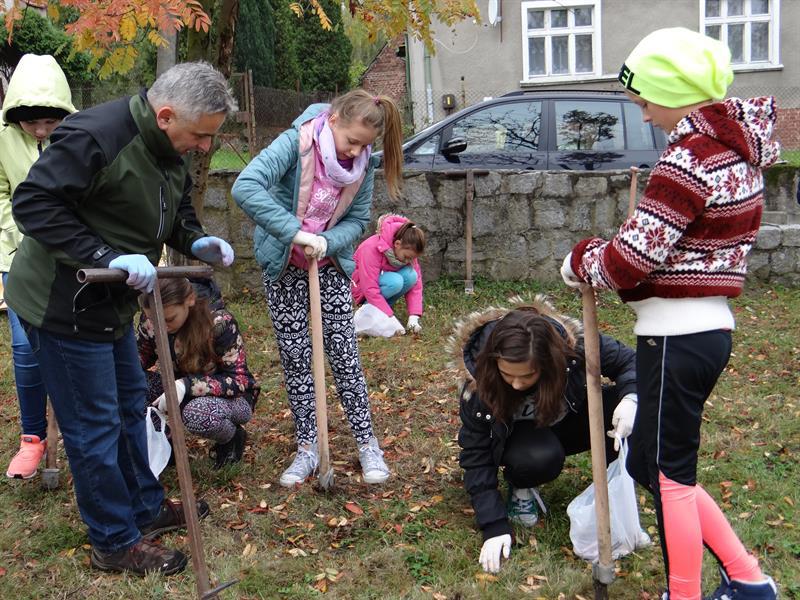 Efekt swojej pracy w plenerze i przemianę trawnika wzdłuż szpaleru jarząbów na przyszkolnym placu w nowy dywan kwiatowy z zasadzonych przez siebie wczoraj fioletowych i niebieskich w paski cebulek krokusów uczniowie, ich najbliżsi, nauczyciele i mieszkańcy Skolwina i nie tylko ujrzą już za kilka miesięcy, na wiosnę. ©℗