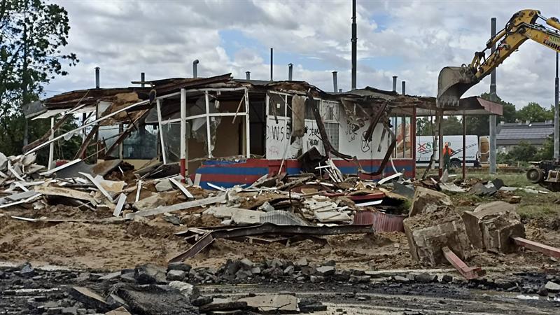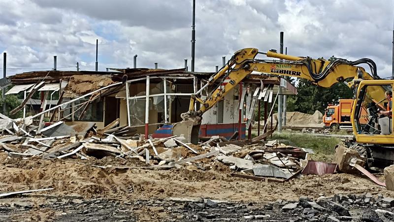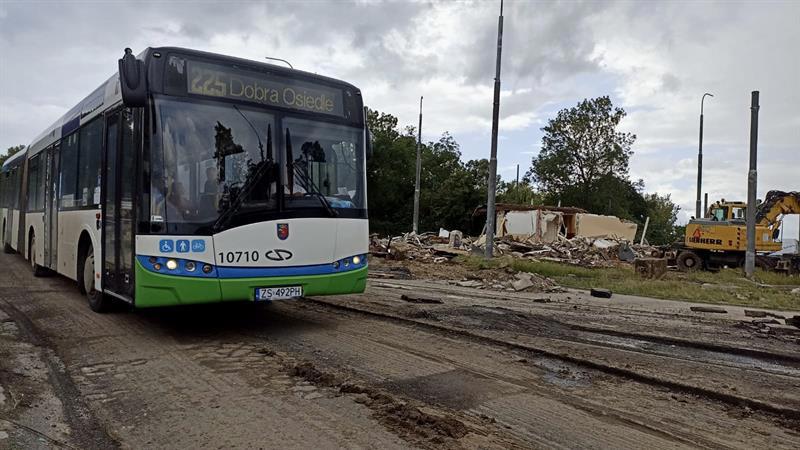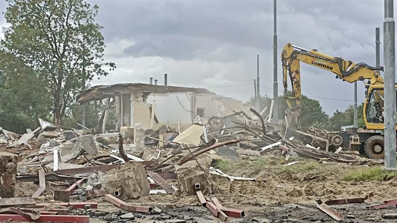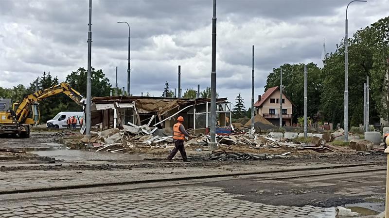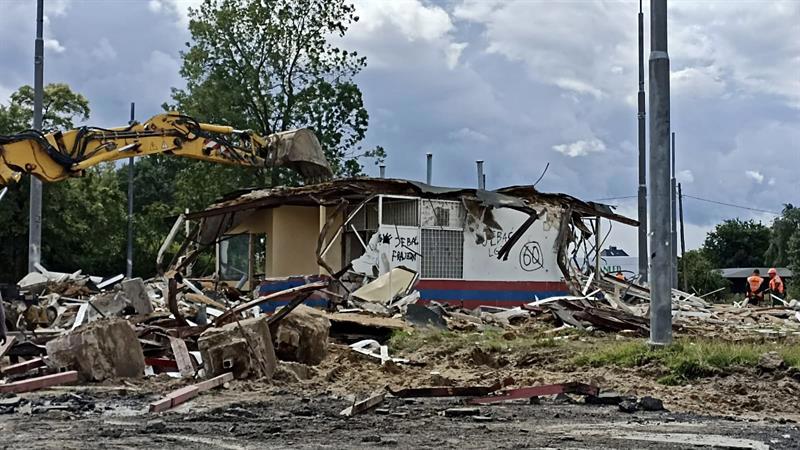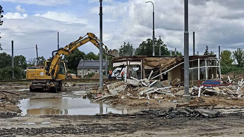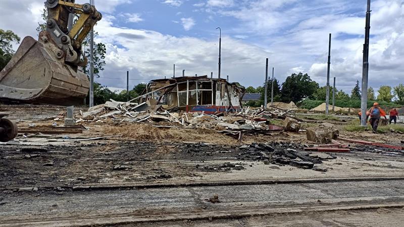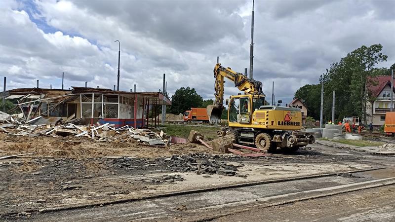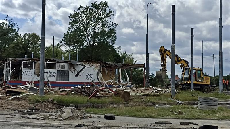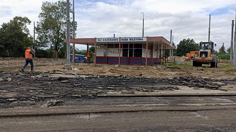 Z krajobrazu szczecińskiego Krzekowa zniknął budynek, w którym przez lata znajdowały się m.in. poczekalnia, kiosk, kasa biletowa i pomieszczenie socjalne dla kierowców i motorniczych. Zdjęcia: Tomasz Tokarzewski