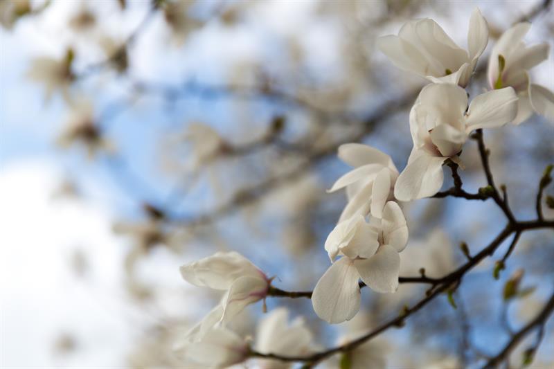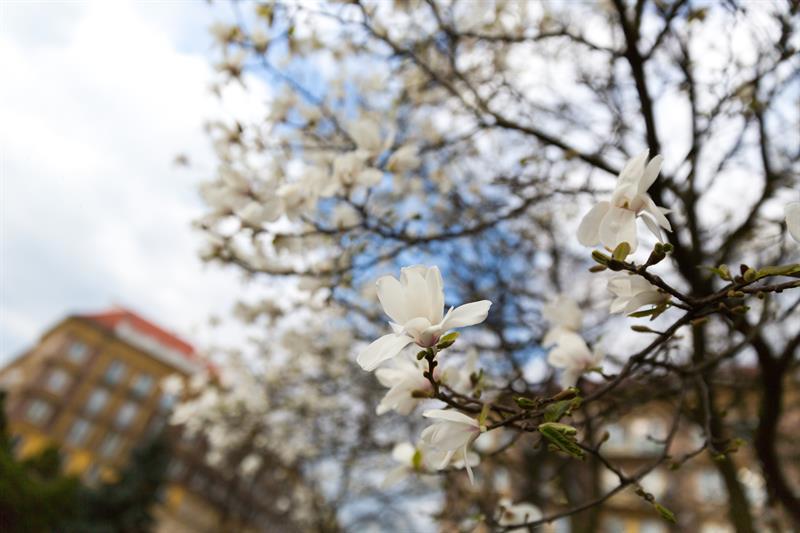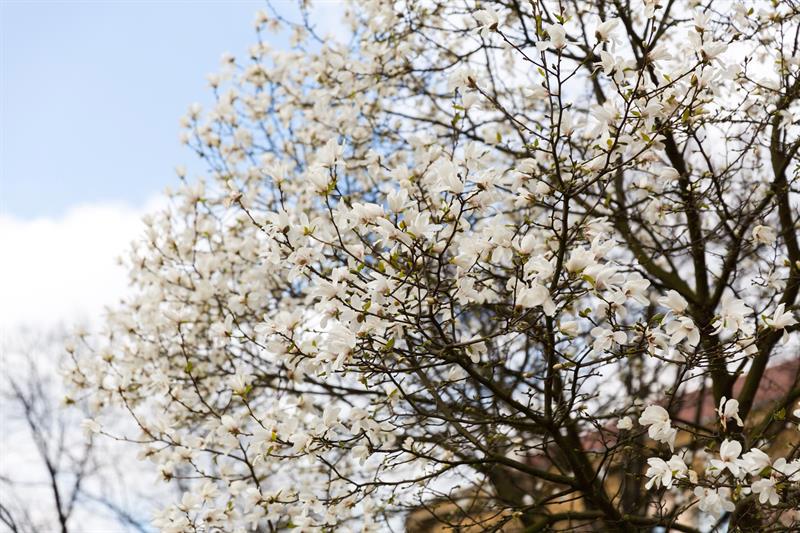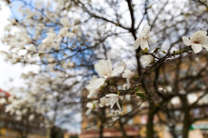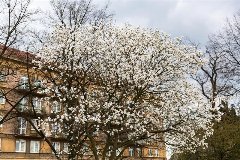 Pięknie rozkwitnięte magnolie wiosną podziwiać można w wielu miejscach Szczecina. Jednym z nich jest plac Lotników, który bardzo zyskuje w otoczeniu białych kwiatów.