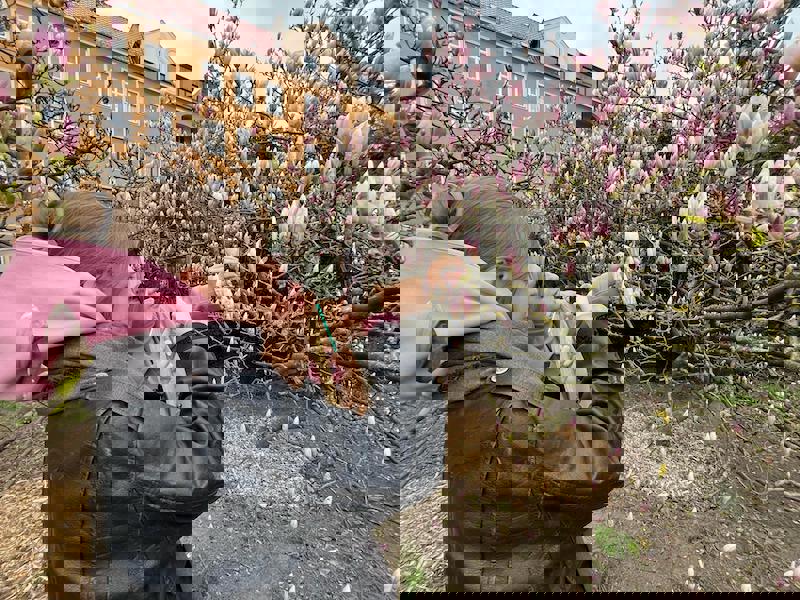 Szczecin rozkwita magnoliami. W ramach spaceru „Piękny Szczecin – szlakiem magnolii” odbył się również plener malarski na placu Lotników.