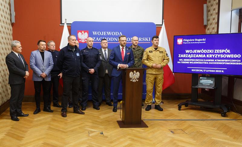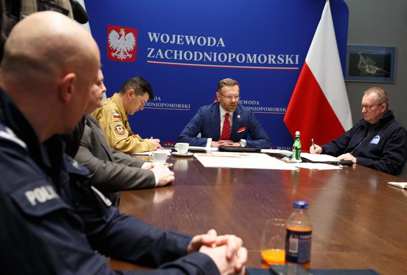 Posiedzenie Wojewódzkiego Zespołu Zarządzania Kryzysowego przed nadciągającym cyklonem Ulf.