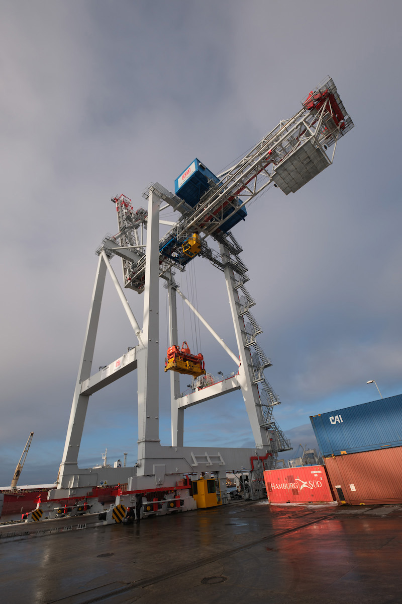 Suwnicę kupiła za 40 mln zł spółka DB Port Szczecin. Inwestycja wiąże się z pogłębieniem toru wodnego Świnoujście – Szczecin, co pozwala na przyjmowanie statków o większym niż dotychczas tonażu. Nowa suwnica może podnieść 75 ton. Fot. Dariusz Gorajski