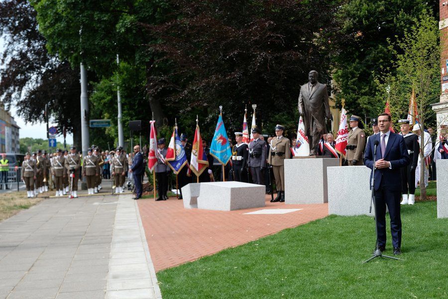 Odsłonięcie pomnika prezydenta RP Lecha Kaczyńskiego odbyło się w sobotę (16 czerwca) przed siedzibą zachodniopomorskiej "Solidarności" przy al. Wojska Polskiego w Szczecinie. W uroczystościach udział wziął premier Mateusz Morawiecki, wraz z delegacją rządową i prezydencką.