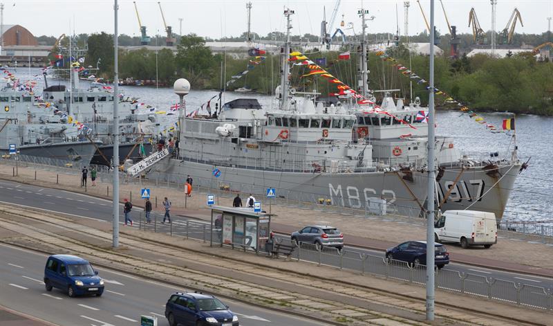 Okręty Stałej Grupy Obrony Przeciwminowej NATO nr 1 zacumowały na weekend przy nabrzeżu u podnóża Wałów Chrobrego w Szczecinie.