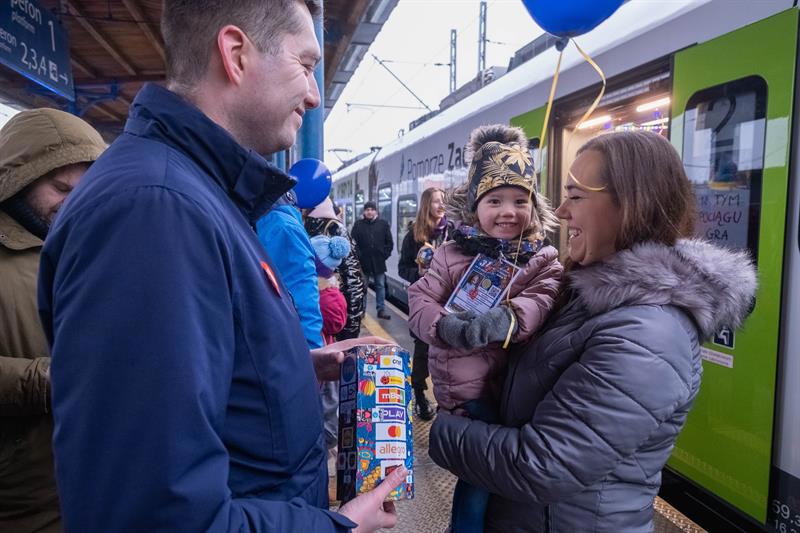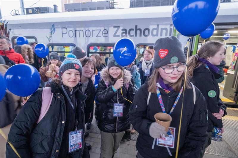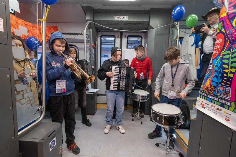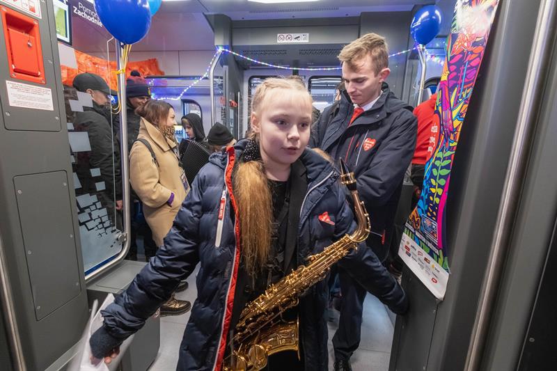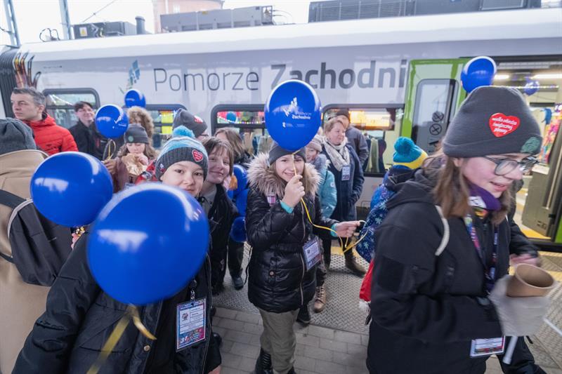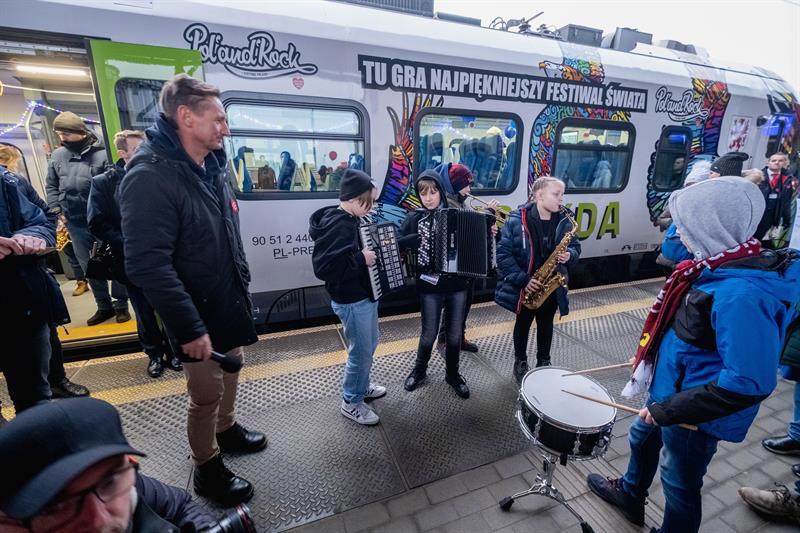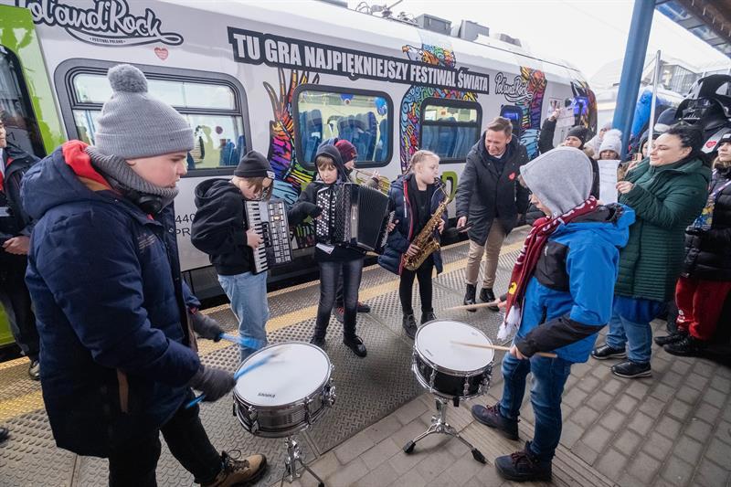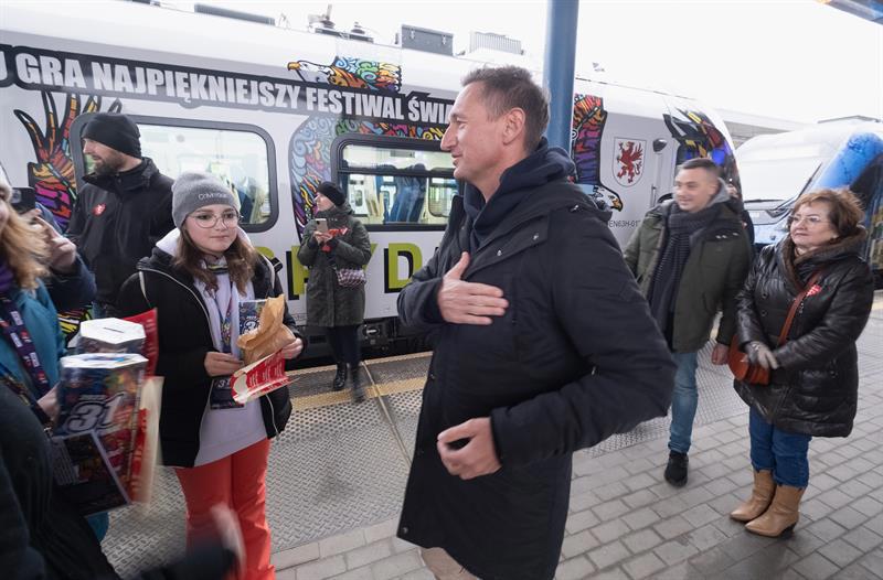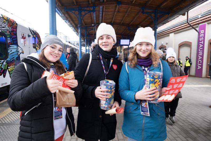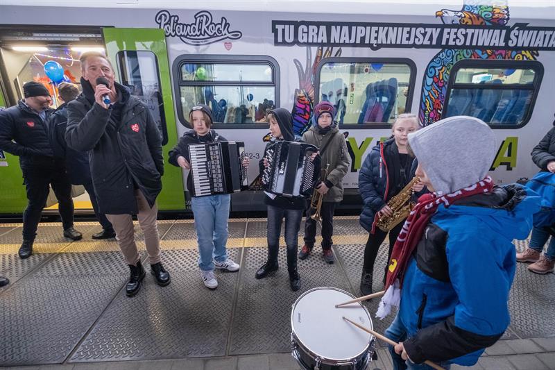 Wielka Orkiestra Świątecznej Pomocy zagrała na Dworcu Głównym w Szczecinie.