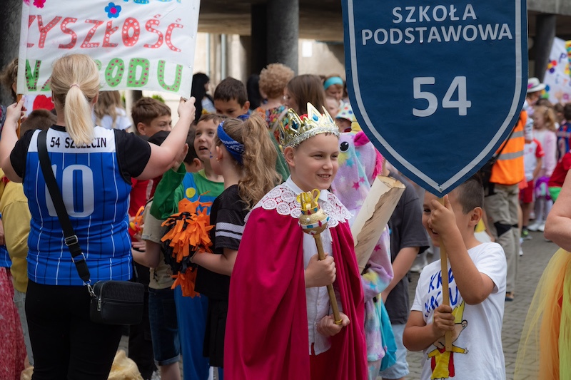 Kolorowy i wesoły pochód z udziałem uczniów Szkoły Podstawowej nr 54 im. Janusza Korczaka przemaszerował w środę przez centrum Szczecina.