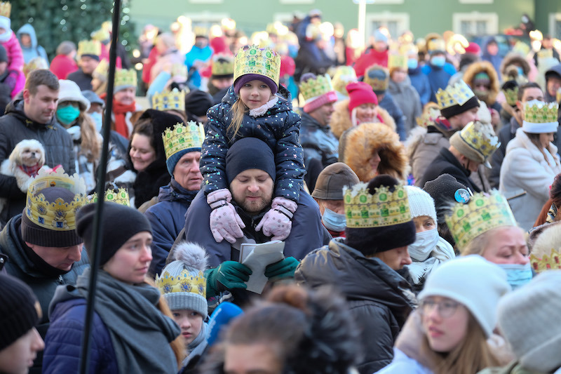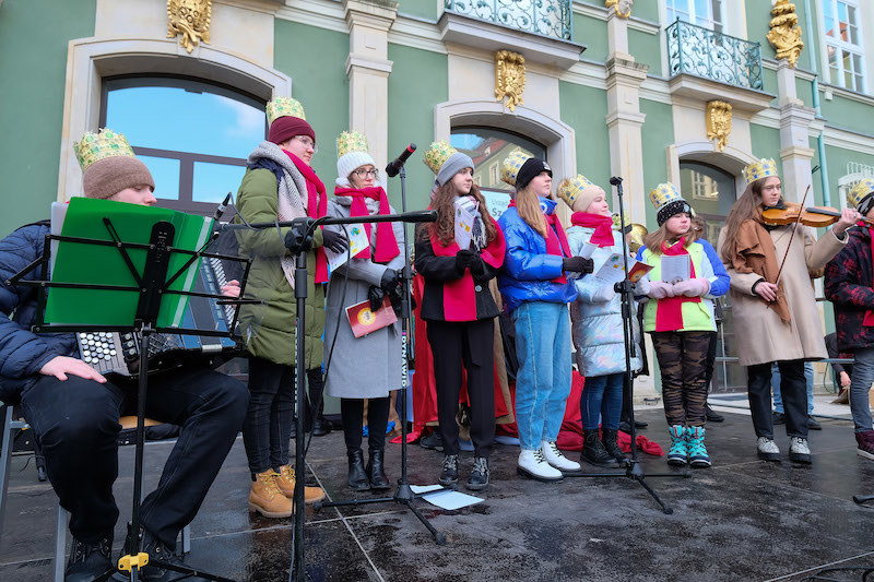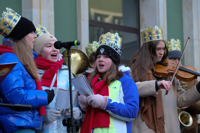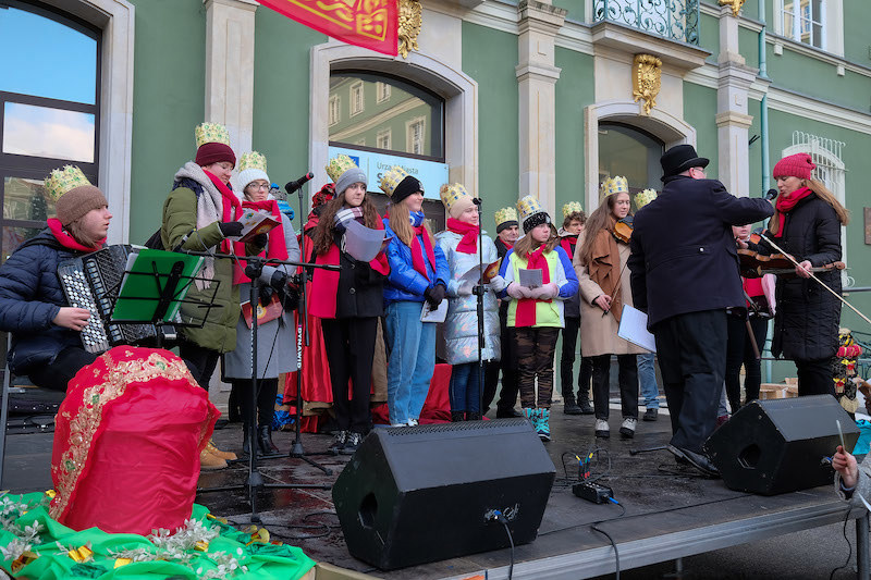 Kolędowano na pl. Armii Krajowej. Skąd Orszak Trzech Króli - Kacpra, Melchiora i Baltazara - przewędrował na pl. Adamowicza, gdzie tym razem stanęła scena szczecińskiego Betlejem.