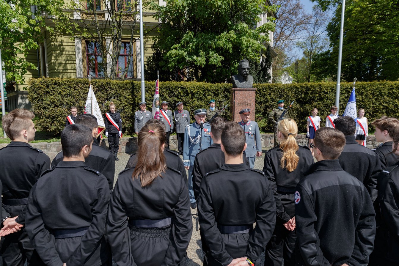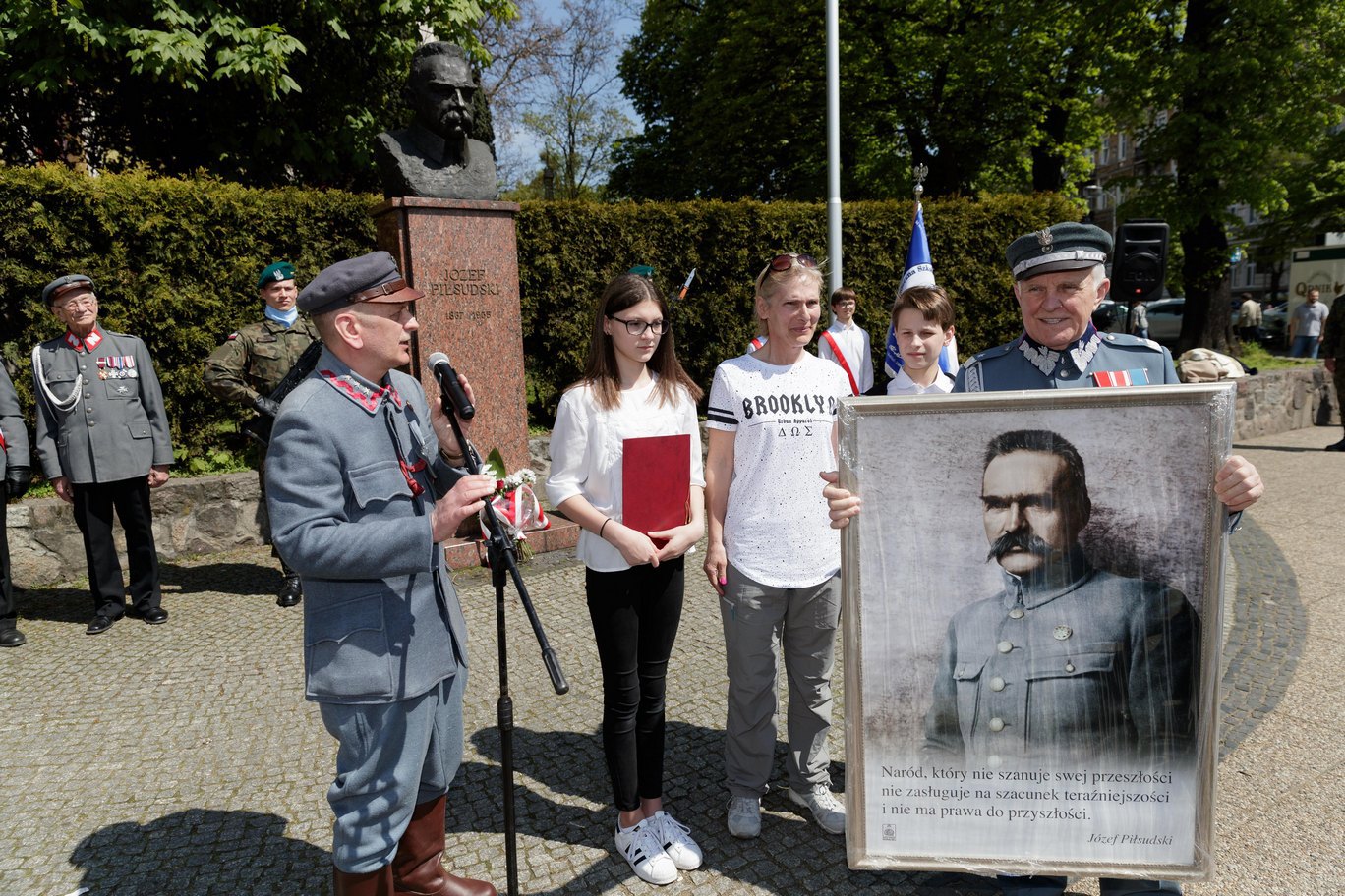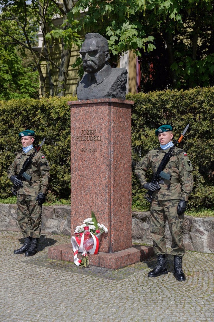 W rocznicę śmierci Marszałka Józefa Piłsudskiego przed jego popiersiem na szczecińskim pl. Szarych Szeregów uczczono jego pamięć.